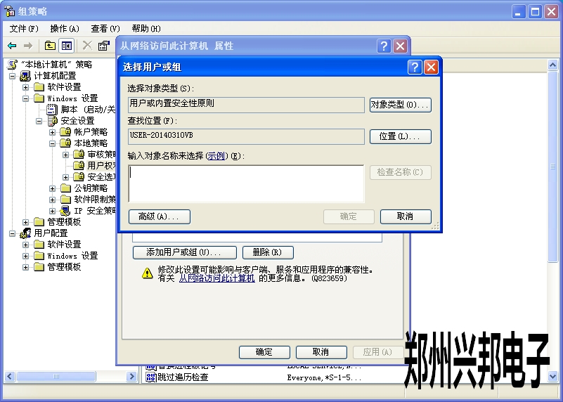 在“拒絕從網(wǎng)絡(luò)訪問”右擊“屬性”把里面的所有賬戶刪除