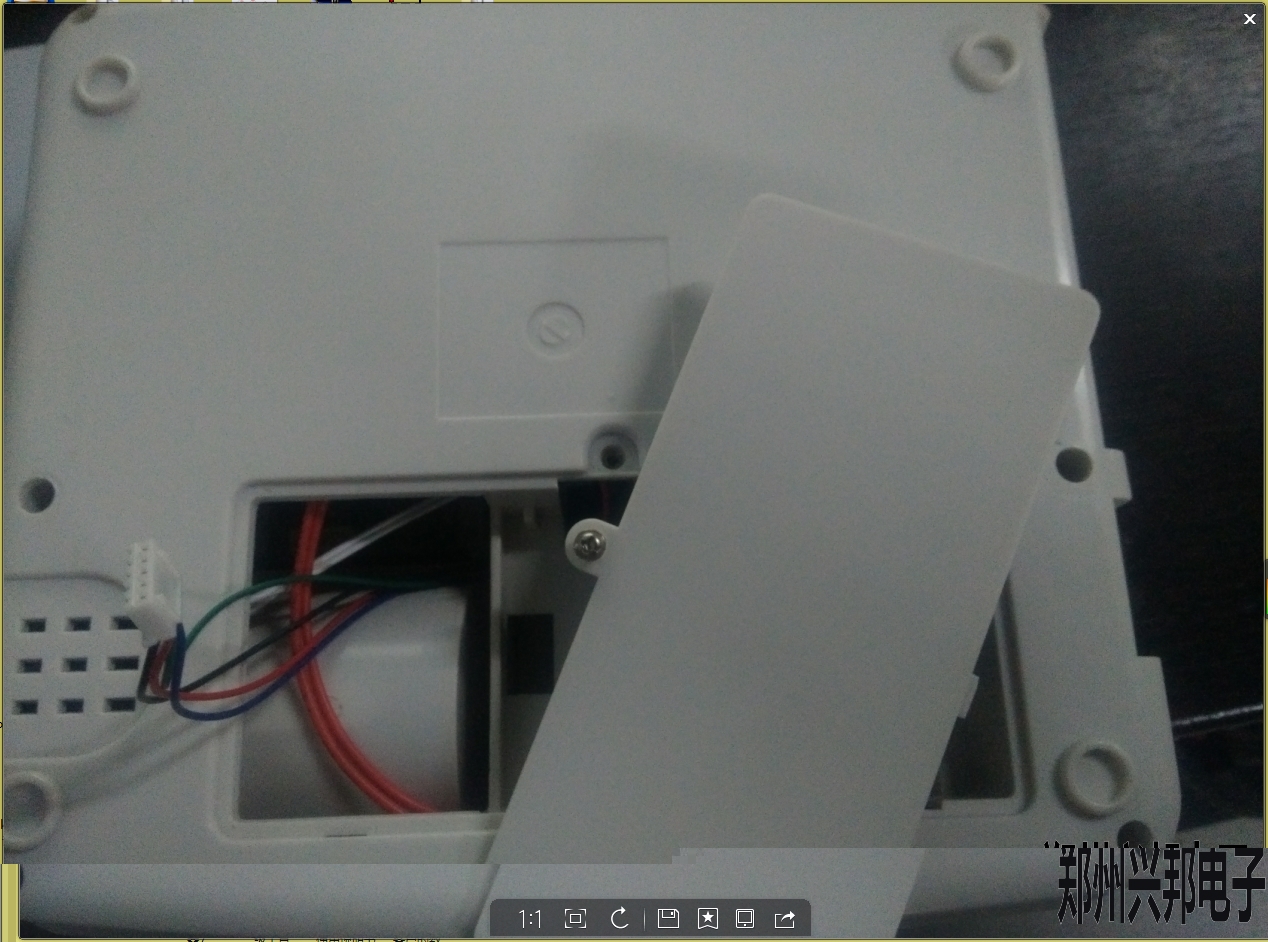 如圖1-1所示,打開(kāi)機(jī)器背部電池蓋,小心去除小票打印機(jī)上邊插著的5p線。把線插到做好的升級(jí)工具線的5p插座上即可。